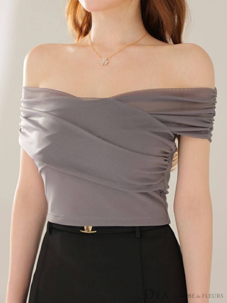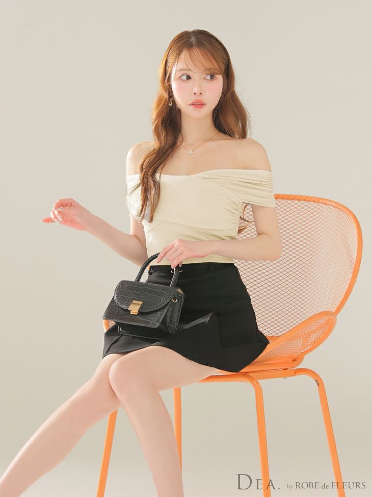 着心地抜群のセットアップ☆ [DEA.byROBEdeFLEURS/ディアバイローブドフルール] 高級 セットアップ ギャザー オフショルダー ウエストベルト チュール カジュアル フレアミニドレス