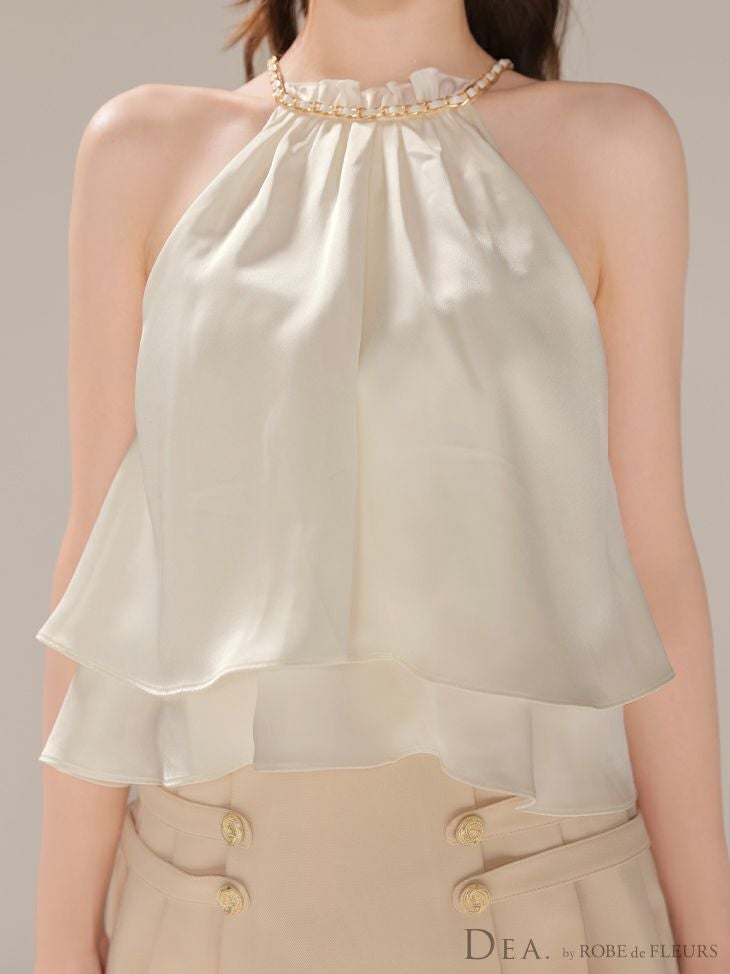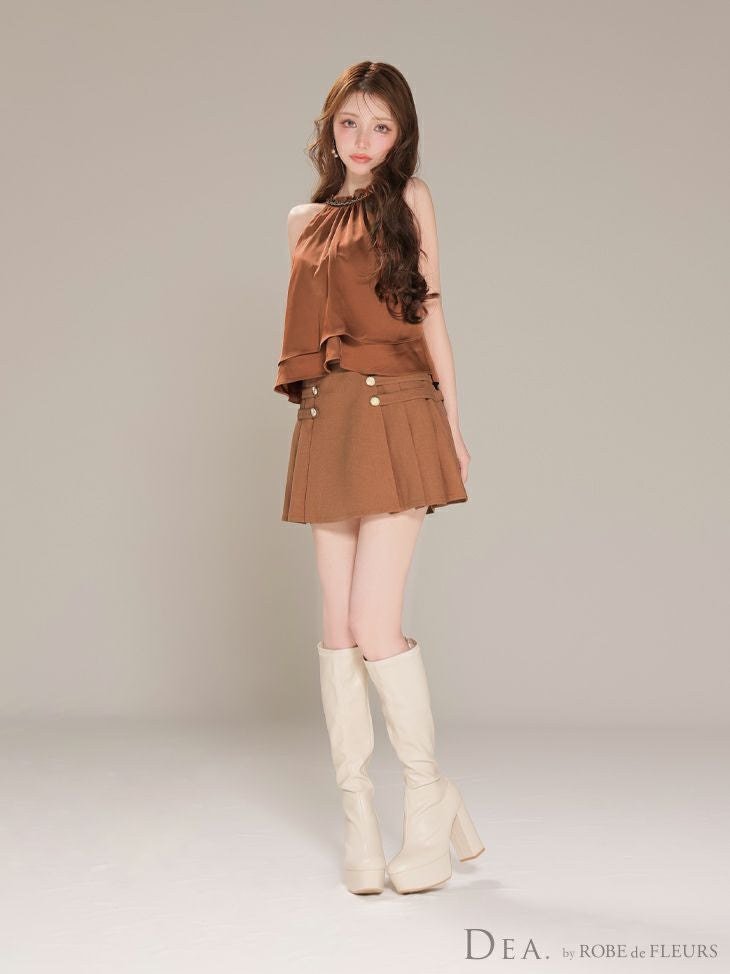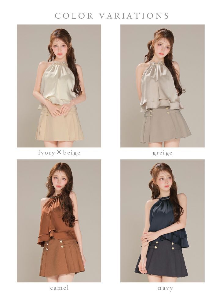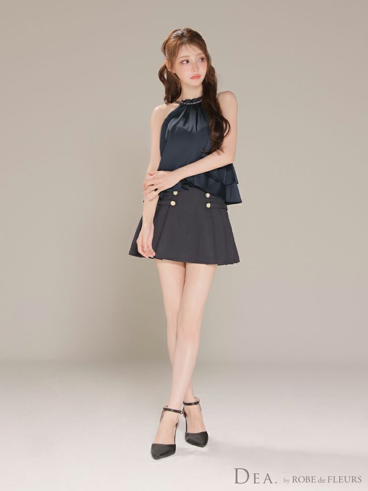 上品さ溢れるセットアップ♡ [DEA.byROBEdeFLEURS/ディアバイローブドフルール] 高級 ブランド Aラインミニドレス セットアップ ホルターネック シフォン フリル レイヤード プリーツ