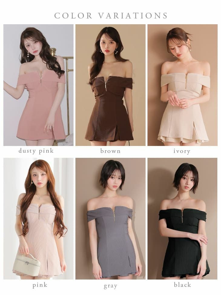 大人の色気溢れるデコルテ魅せ♡ [DEA.byROBEdeFLEURS/ディアバイローブドフルール] 高級 ブランド フレアミニドレス セットアップ オフショルダー フロントジップ リブ ツイル