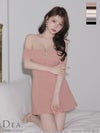 シーズンムードを高める♡ [DEA.byROBEdeFLEURS/ディアバイローブドフルール] 高級 ブランド フレアミニドレス セットアップ オフショルダー フロントジップ リブ ツイル