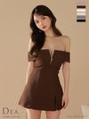 フェミニンな色気を放つ♡ [DEA.byROBEdeFLEURS/ディアバイローブドフルール] 高級 ブランド フレアミニドレス セットアップ オフショルダー フロントジップ リブ ツイル