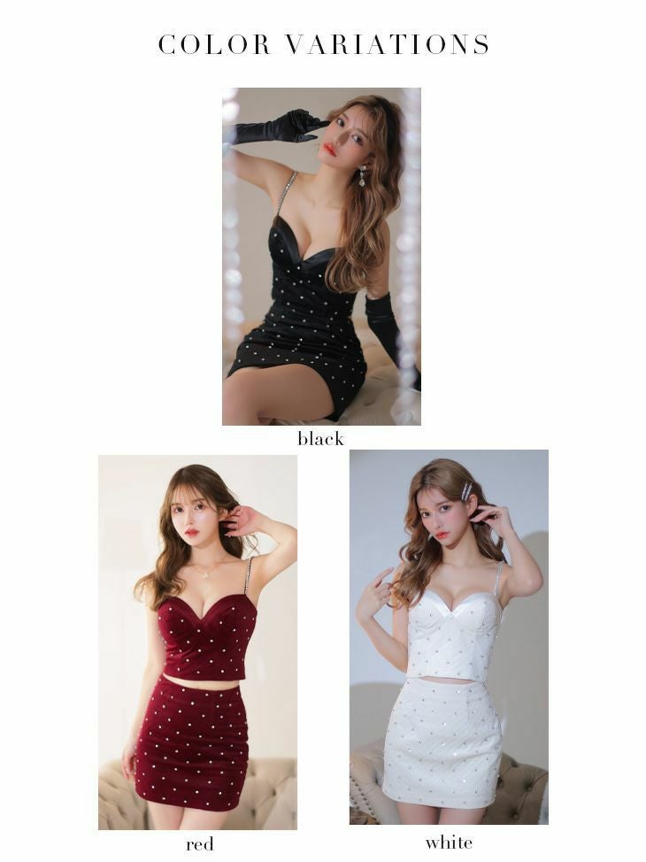 ラインビジューが煌めく☆ [ROBEdeFLEURSGlossy/ローブドフルールグロッシー] 高級ベロアキルティングキャミソールセットアップタイトミニドレス