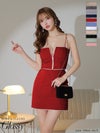 5. [ROBEdeFLEURSGlossy/ローブドフルールグロッシー] 高級 ブランド タイトミニドレス セットアップ チェーン キャミソール キルティング ジップ スタッズ