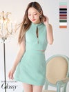 5. [ROBEdeFLEURSGlossy/ローブドフルールグロッシー] 高級ジップシンプルワンカラーストレッチノースリーブセットアップタイトミニドレス