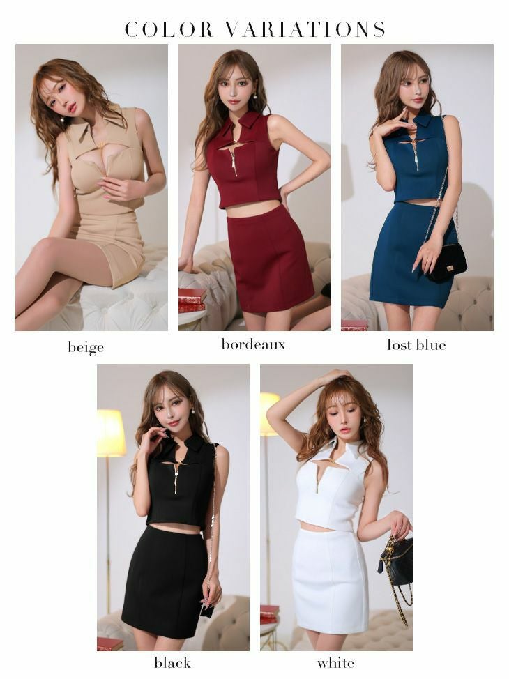 ショート丈のトップスで肌見せがセクシー☆ [ROBEdeFLEURSGlossy/ローブドフルールグロッシー] 高級 スタイリッシュカラー 襟付き ノースリーブ セットアップ タイトミニドレス