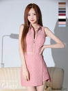 5. [ROBEdeFLEURSGlossy/ローブドフルールグロッシー] 高級 ノースリーブ 襟付き ジップ セットアップ シンプル タイトミニドレス