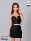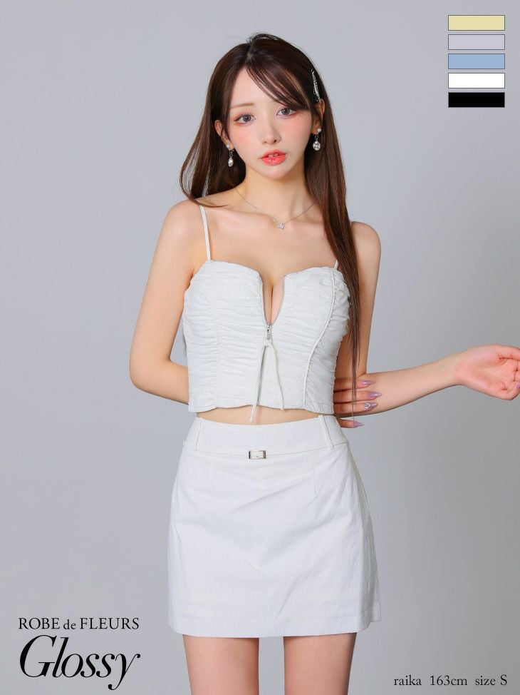 4. [ROBEdeFLEURSGlossy/ローブドフルールグロッシー] 高級シャーリングキャミソールセットアップジップウエストベルトタイトミニドレス