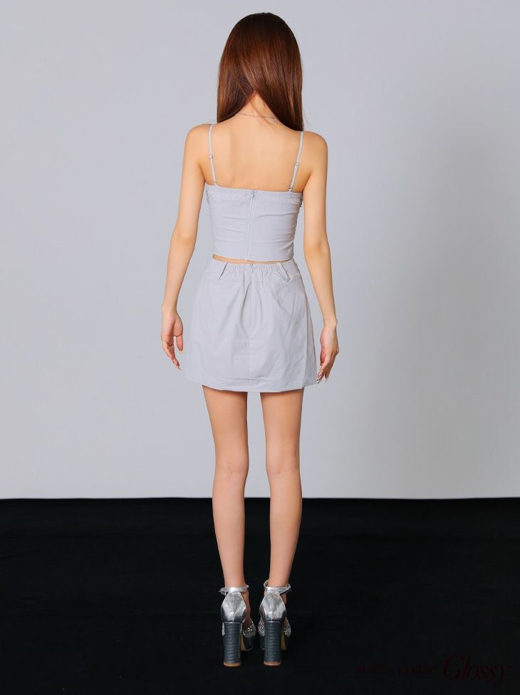 6. [ROBEdeFLEURSGlossy/ローブドフルールグロッシー] 高級シャーリングキャミソールセットアップジップウエストベルトタイトミニドレス