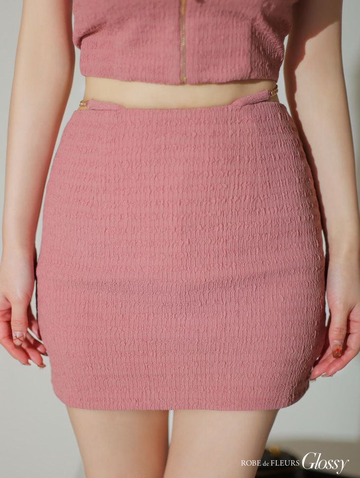 谷間魅せであざとくsexyに☆ [ROBEdeFLEURSGlossy/ローブドフルールグロッシー] 高級ホルターネックワッフル生地ワンカラーセットアップジップデザインタイトミニドレス