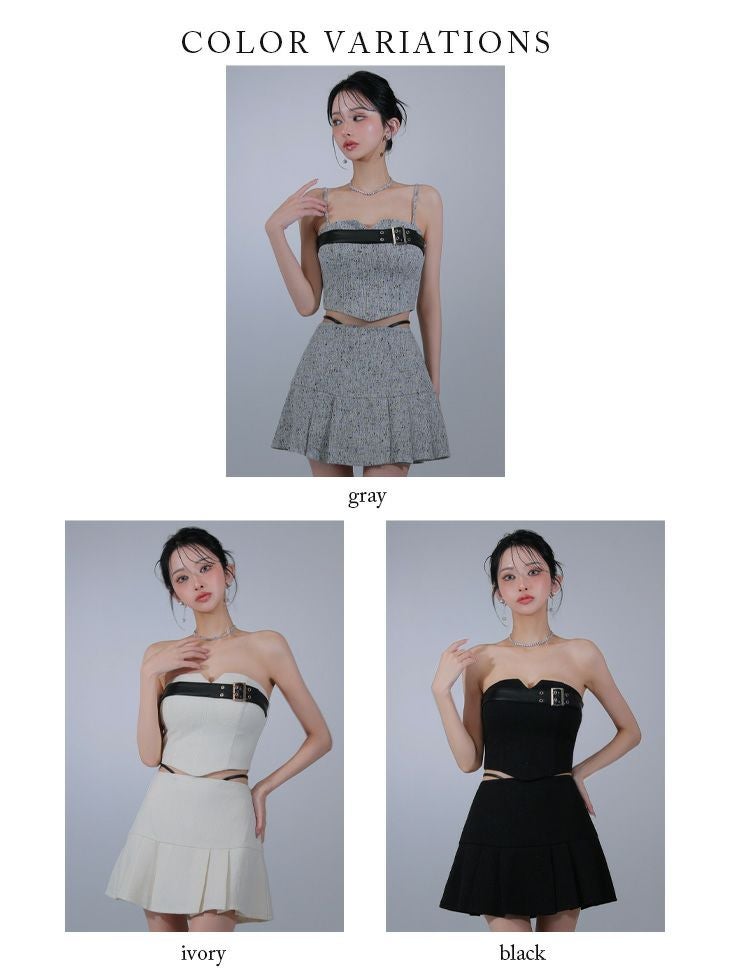 トレンド感溢れるsexyデザイン♡ [ROBEdeFLEURSGlossy/ローブドフルールグロッシー] 高級 2way ベア キャミソール ベルトデザイン ツイード ウエストレザーコード セットアップ フレアミニドレス