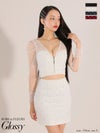 6. [ROBEdeFLEURSGlossy/ローブドフルールグロッシー] 高級バストジップビーズチュールセットアップレース長袖 袖ありタイトミニドレス