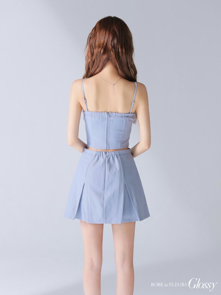プリーツスカートがトレンド感を演出☆ [ROBEdeFLEURSGlossy/ローブドフルールグロッシー] 高級 2way キャミソール セットアップ バストカット ウエストベルト プリーツ 谷間魅せ タイトミニドレス