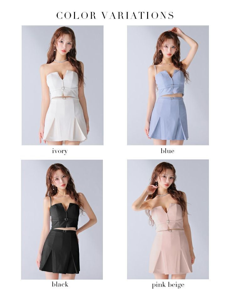 5. [ROBEdeFLEURSGlossy/ローブドフルールグロッシー] 高級 2way キャミソール セットアップ バストカット ウエストベルト プリーツ 谷間魅せ タイトミニドレス