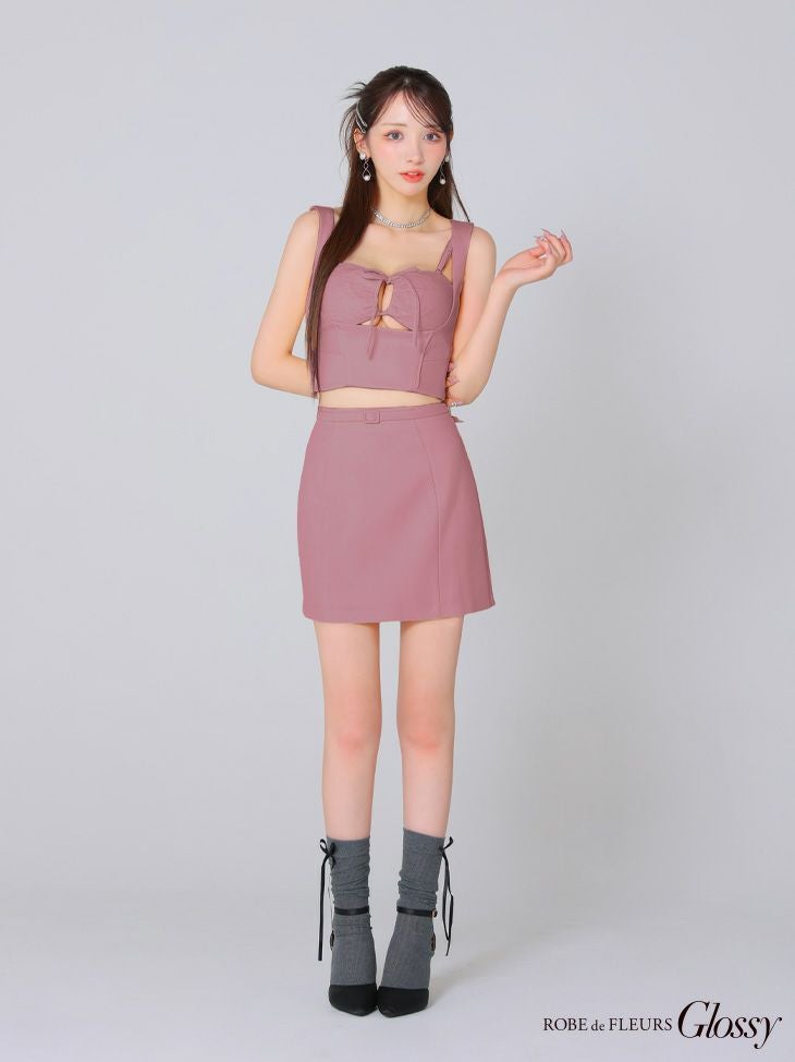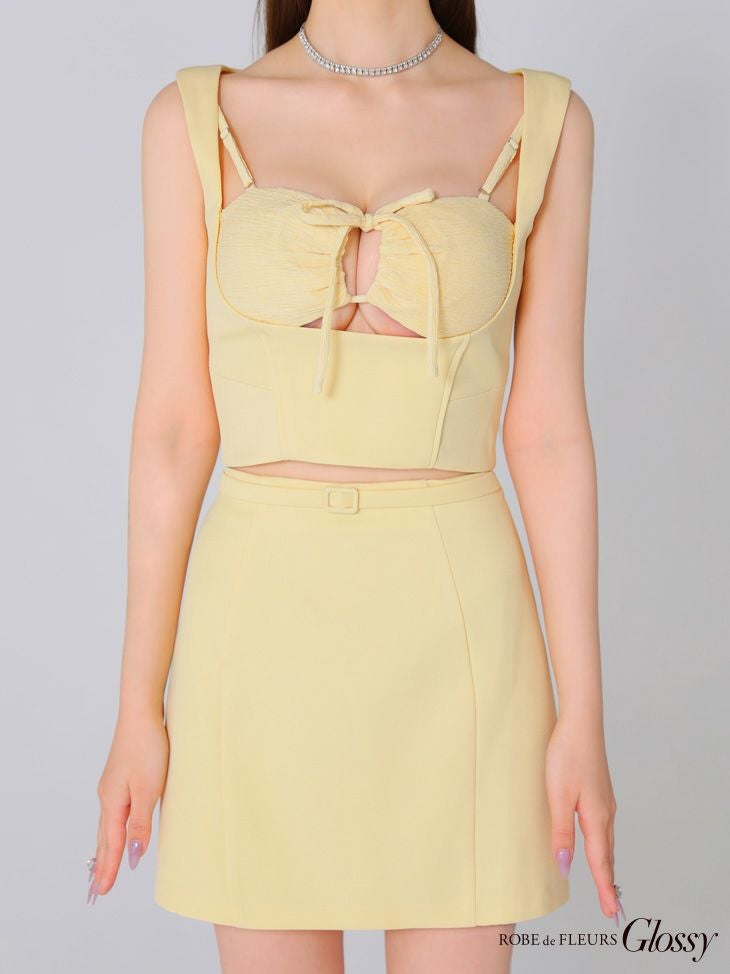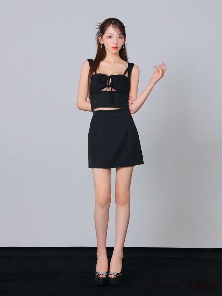 デコルテを綺麗に魅せる一着☆ [ROBEdeFLEURSGlossy/ローブドフルールグロッシー] 高級 バストカット ノースリーブ セットアップ ウエストベルト ワンカラー 谷間魅せ タイトミニドレス
