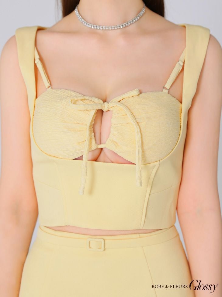 タイトシルエットでスタイルUP☆ [ROBEdeFLEURSGlossy/ローブドフルールグロッシー] 高級 バストカット ノースリーブ セットアップ ウエストベルト ワンカラー 谷間魅せ タイトミニドレス
