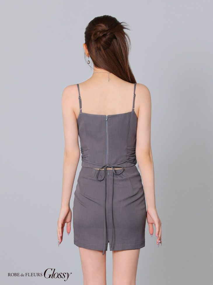 5. [ROBEdeFLEURSGlossy/ローブドフルールグロッシー] 高級 セットアップ キャミソール バストカット サイド編み上げ ウエストバックリボン ビジュー 谷間魅せ タイトミニドレス