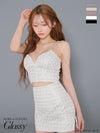 煌めくチェーンが色っぽさを格上げ♡ [ROBEdeFLEURSGlossy/ローブドフルールグロッシー] 高級 キャミソール ビジューチェーン付き セットアップ ラメチュール タイトミニドレス