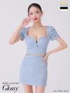 5. [ROBEdeFLEURSGlossy/ローブドフルールグロッシー] 高級半袖セットアップフロントジップビジューウエストシアータイトミニドレス