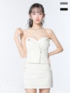 4. [ROBEdeFLEURSGlossy/ローブドフルールグロッシー] 高級 ハートカット キャミソール ジップ セットアップ ストライプ柄 タイトミニドレス