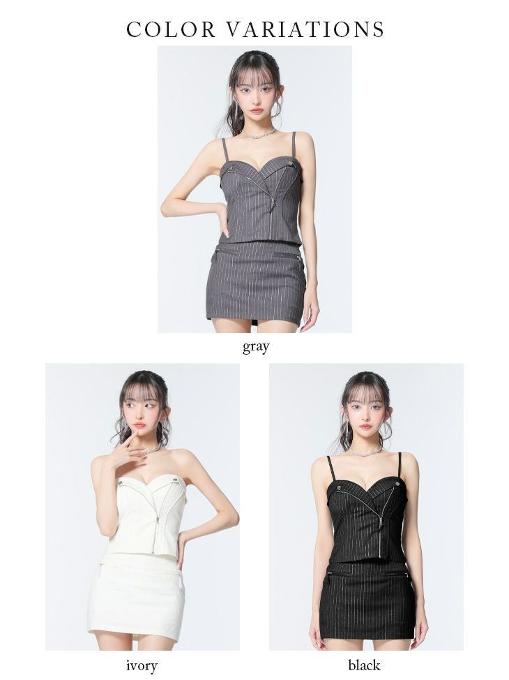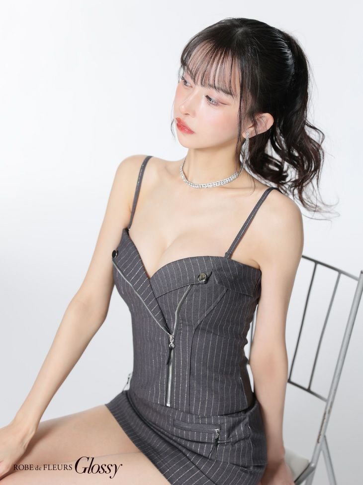 ストライプが大人っぽさを引き立てる♡ [ROBEdeFLEURSGlossy/ローブドフルールグロッシー] 高級 ハートカット キャミソール ジップ セットアップ ストライプ柄 タイトミニドレス