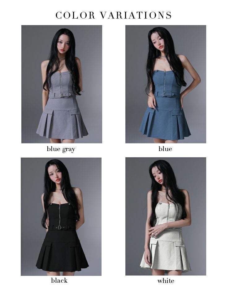 プリーツ入りで美脚効果抜群♡ [ROBEdeFLEURSGlossy/ローブドフルールグロッシー] 高級 2way キャミソール バストジップ ウエストベルト セットアップ プリーツ フレアミニドレス