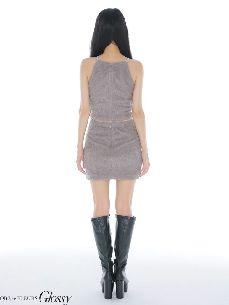 ふわふわニットで触れたくなっちゃう♡ [ROBEdeFLEURSGlossy/ローブドフルールグロッシー] 高級 ブランド タイトミニドレス 谷間 セットアップ ホルターネック ニット ストレッチ