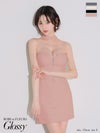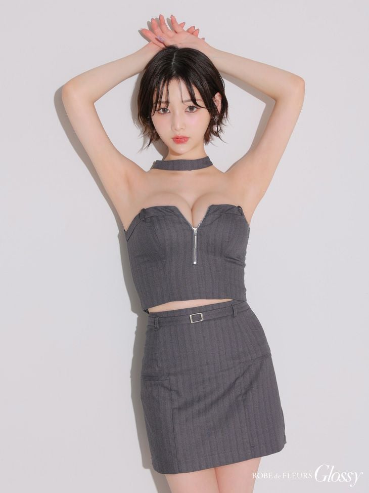 キャバドレス ミニドレス ROBEdeFLEURSGlossy ローブドフルールグロッシー 高級 ベアトップ セットアップ ジップ ウエストベルト チョーカーデザイン チェーン タイトミニドレス