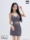5. [ROBEdeFLEURSGlossy/ローブドフルールグロッシー] 高級 ブランド タイトミニドレス 谷間 キャミソール セットアップ ギャザー サテン シンプル