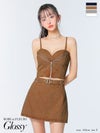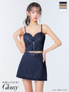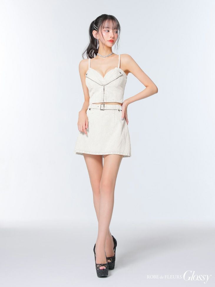 トレンド感溢れるsexyデザイン♡ [ROBEdeFLEURSGlossy/ローブドフルールグロッシー] 高級 ブランド Aラインミニドレス キャミソール 谷間 セットアップ ウエストベルト ジップ デニム