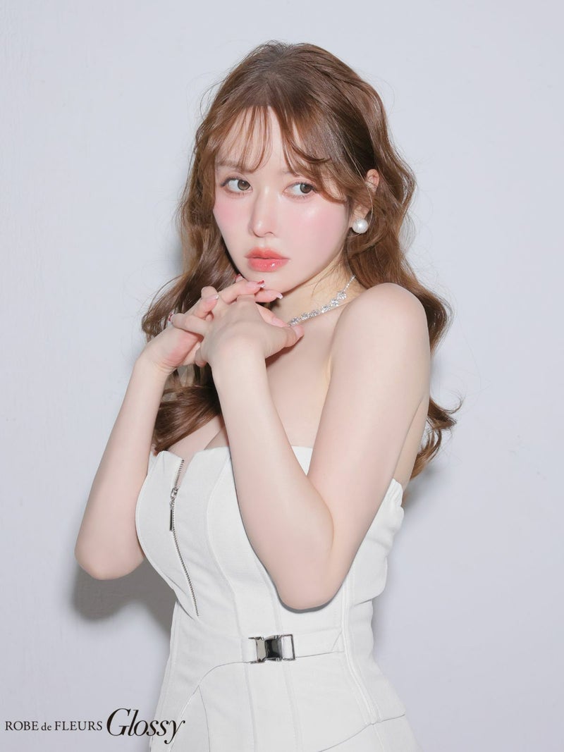 大胆な肌見せで視線を集める♡ [ROBEdeFLEURSGlossy/ローブドフルールグロッシー] 高級 ブランド タイトミニドレス 谷間 セットアップ ベア 背中魅せ ジップ サイドウエストベルト