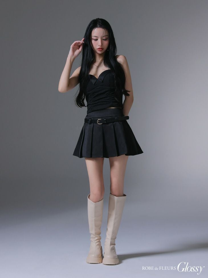 シンプルながらも目を惹く♡ [ROBEdeFLEURSGlossy/ローブドフルールグロッシー] 高級 チェーンキャミソール ハートカット 谷間魅せ セットアップ ウエストベルト プリーツ フレアミニドレス