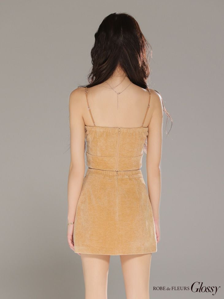 5. [ROBEdeFLEURSGlossy/ローブドフルールグロッシー] 高級 ブランド タイトミニドレス セットアップ キャミソール チェーン ジップ コーデュロイ