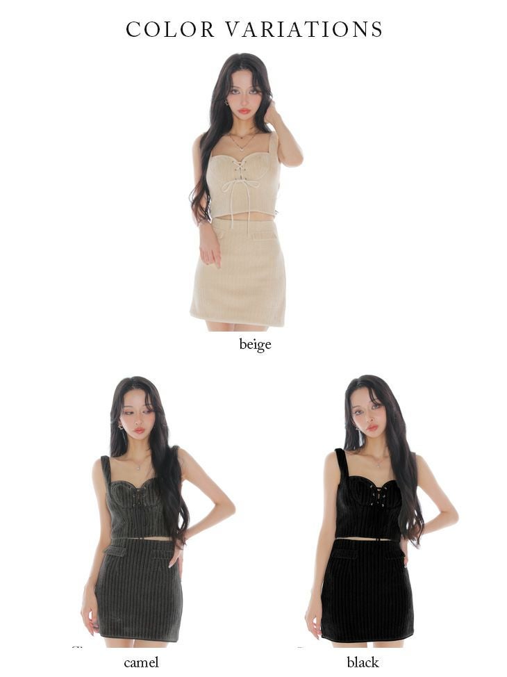 コーデュロイが可愛さを引き立てる♡ [ROBEdeFLEURSGlossy/ローブドフルールグロッシー] 高級 ブランド タイトミニドレス 谷間 セットアップ ノースリーブ ハートカット レースアップ コーデュロイ
