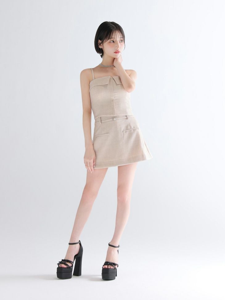 4. [ROBEdeFLEURSGlossy/ローブドフルールグロッシー] 高級 ブランド Aラインミニドレス セットアップ ベア キャミソール 2way ウエストベルト ジップ