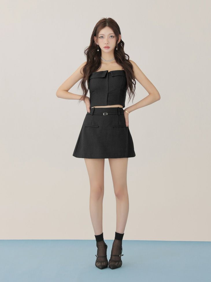 クールな女の子を演出♡ [ROBEdeFLEURSGlossy/ローブドフルールグロッシー] 高級 ブランド Aラインミニドレス セットアップ ベア キャミソール 2way ウエストベルト ジップ