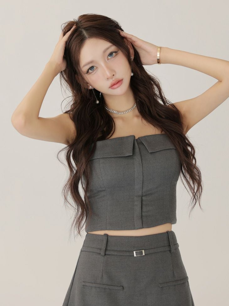 甘辛デザインで差をつける♡ [ROBEdeFLEURSGlossy/ローブドフルールグロッシー] 高級 ブランド Aラインミニドレス セットアップ ベア キャミソール 2way ウエストベルト ジップ
