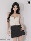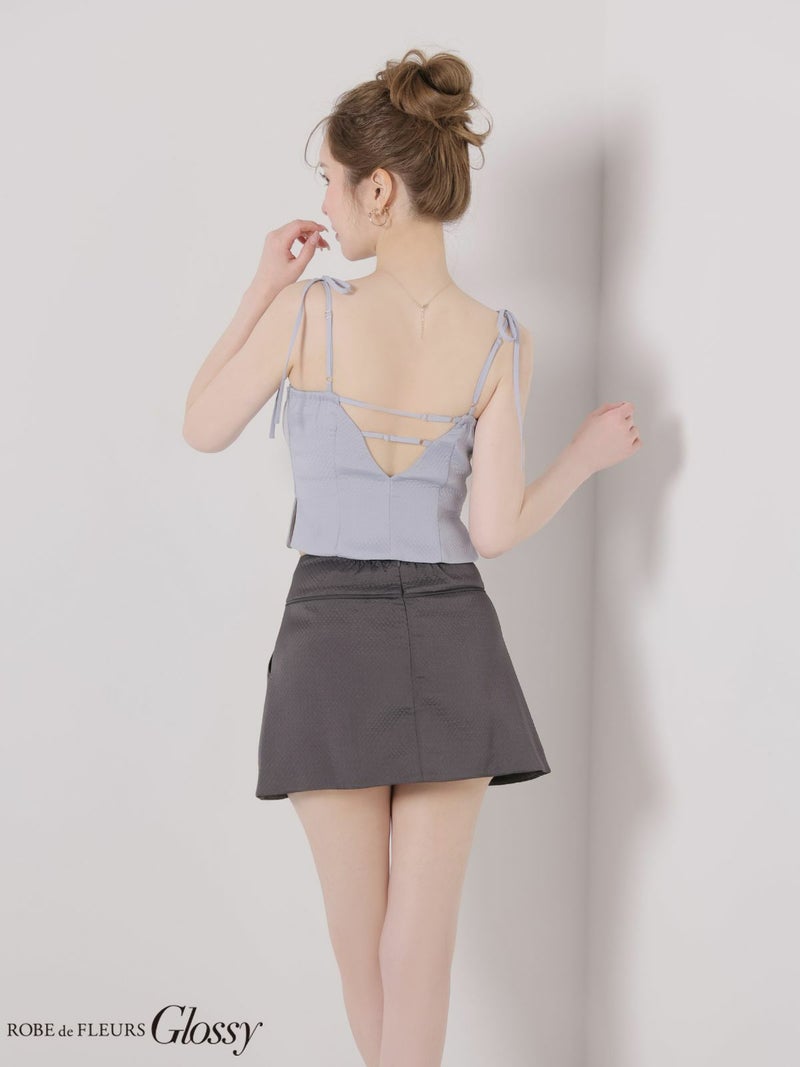 4. [ROBEdeFLEURSGlossy/ローブドフルールグロッシー] 高級 ブランド タイトミニドレス 谷間 セットアップ キャミソール ショルダーリボン ジップ 背中魅せ キルティング パイピング