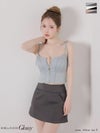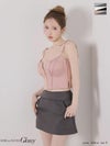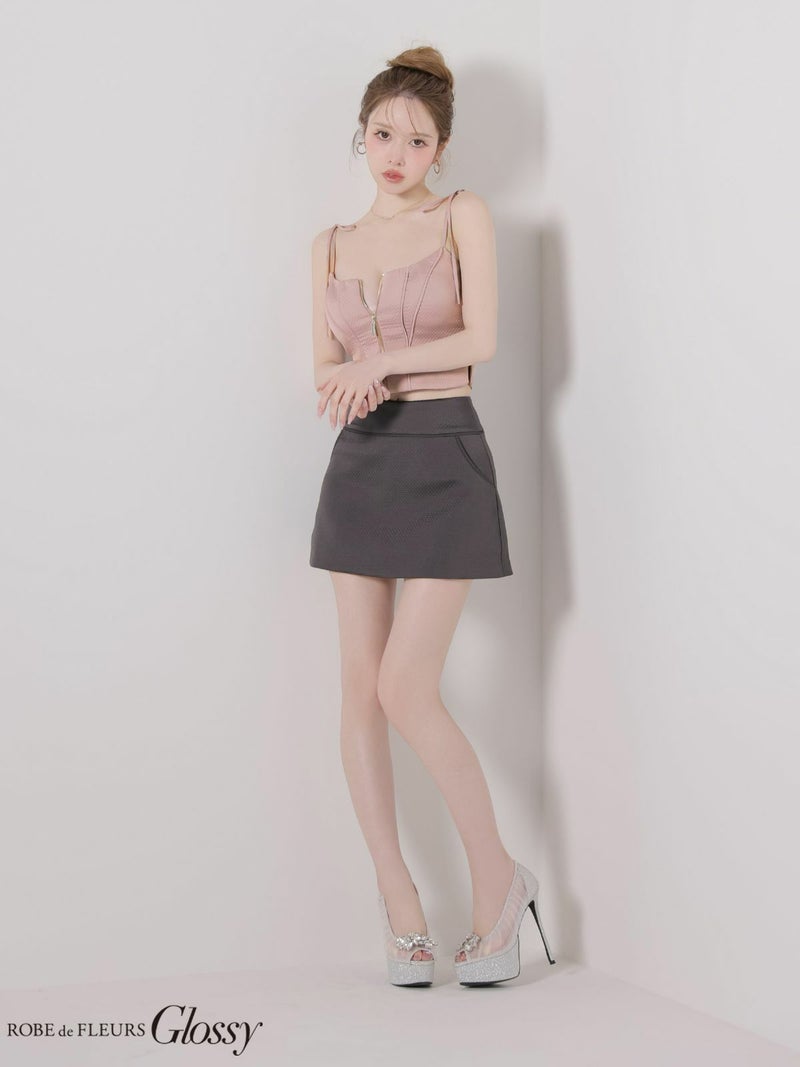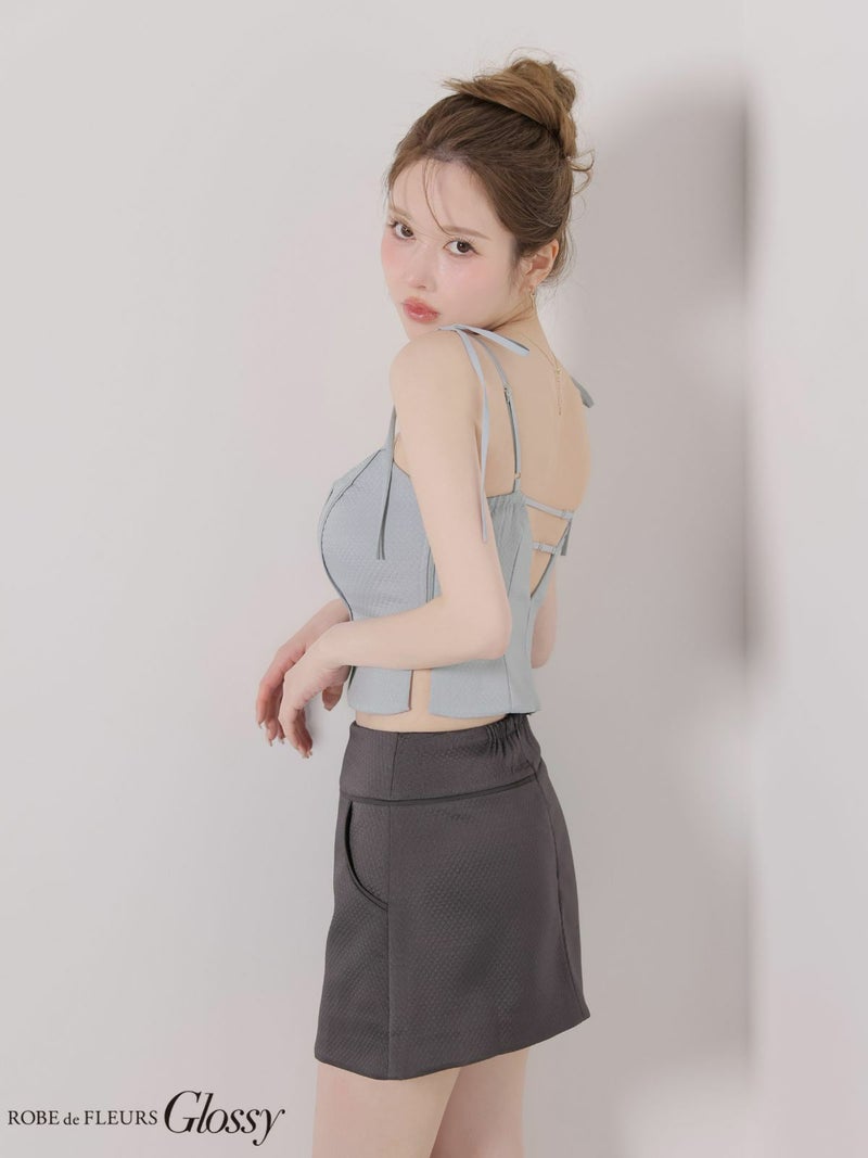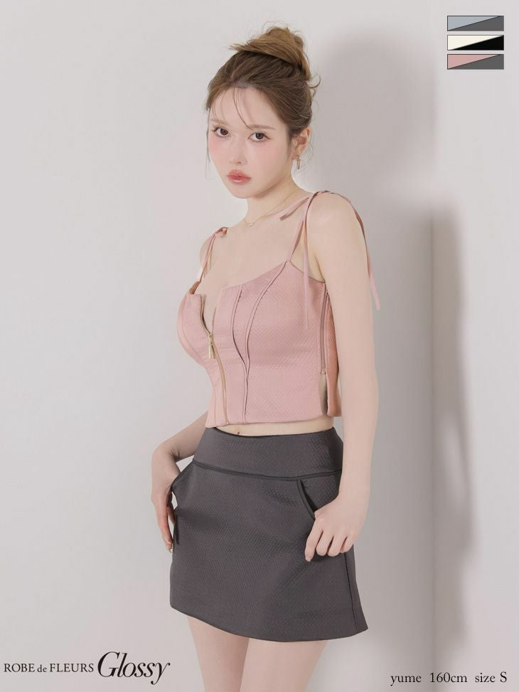 4. [ROBEdeFLEURSGlossy/ローブドフルールグロッシー] 高級 ブランド タイトミニドレス 谷間 セットアップ キャミソール ショルダーリボン ジップ 背中魅せ キルティング パイピング
