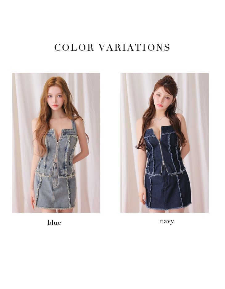 5. 予約商品【3月下旬入荷予定】[ROBEdeFLEURSGlossy/ローブドフルールグロッシー] 高級 ブランド タイトミニドレス 谷間 セットアップ キャミソール デニム フリンジ ジップ スクエアネック