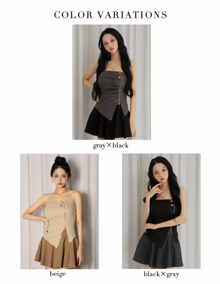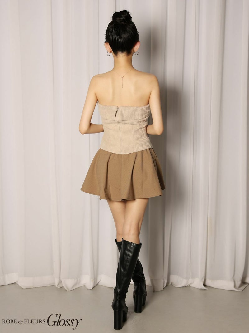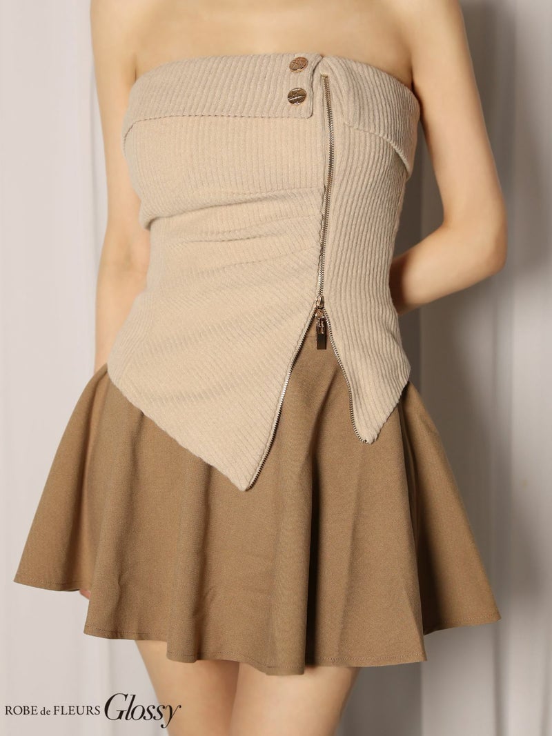 媚びない女の子に演出♡ 予約商品【6月中旬入荷予定】[ROBEdeFLEURSGlossy/ローブドフルールグロッシー] 高級 ブランド Aラインミニドレス セットアップ ベア リブ アシンメトリー
