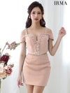 4. [IRMA/イルマ] 高級セットアップフロントジップビジュー肩出し 二の腕カバータイトミニドレス