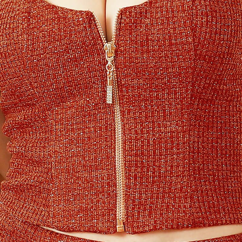 PURESS ピュアレス 高級スカーフチェーンフロントジップセットアップキャミソールタイトミニドレス