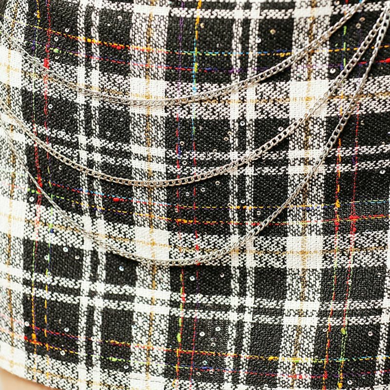 3. [PURESS/ピュアレス] 高級シャツレイヤード半袖ツイードチェック柄チェーン付きセットアップフレアミニドレス