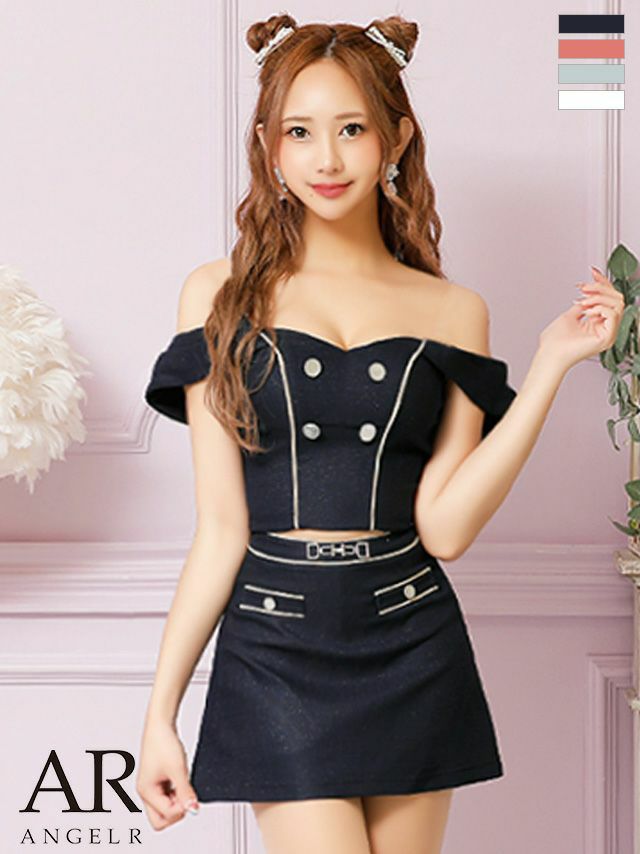 キャバドレス ミニドレス [PURESS/ピュアレス] 高級キャミソールバイカラーチェーンショルダーボタンチャームセットアップ肩あきタイトミニドレス