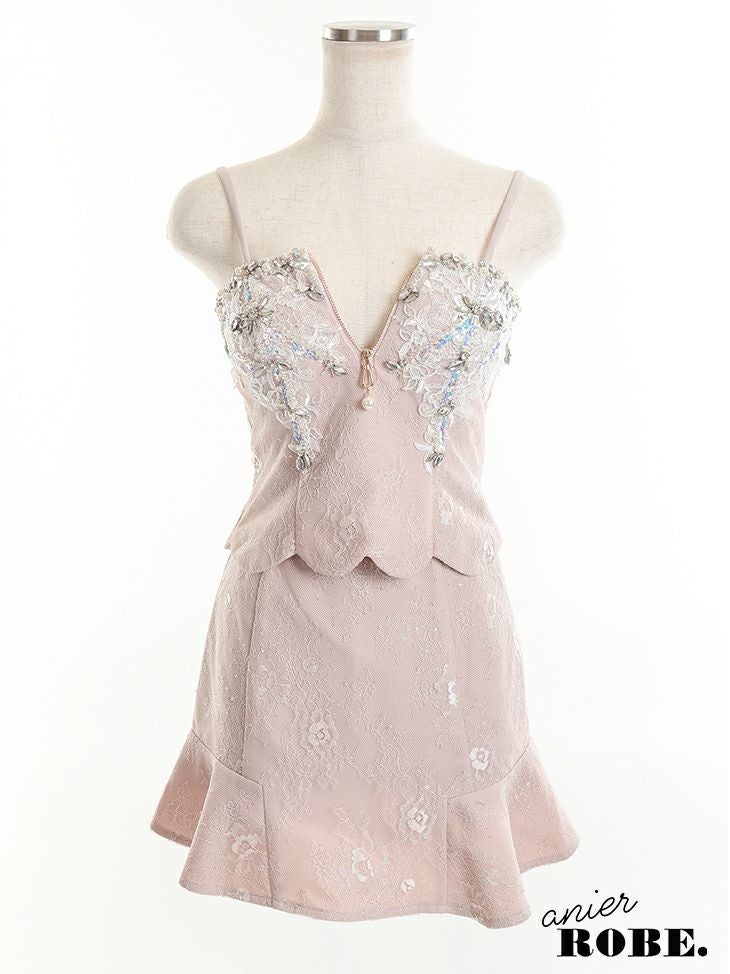 5. [ANIER./アニエル] 高級バストジップビジューレースデザインキャミソールセットアップミニドレス