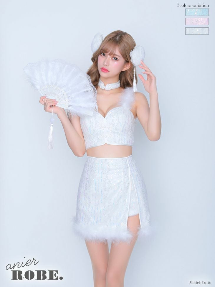【anier.ROBE/アニエルローブ】ファー キラキラ スリット セットアップ チャイナドレス コスプレのカラーバリエーション