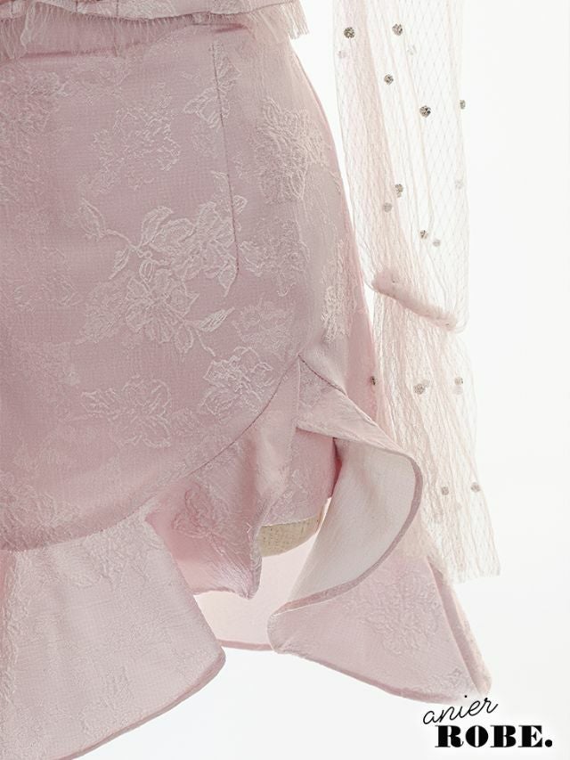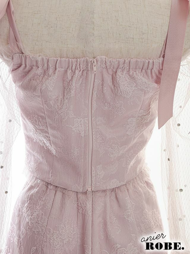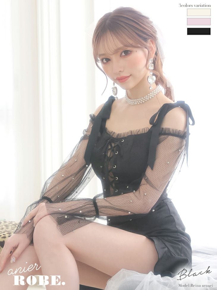 4. [ANIER./アニエル] 高級胸元レースアップチュールスリーブオフショルセットアップミニドレス