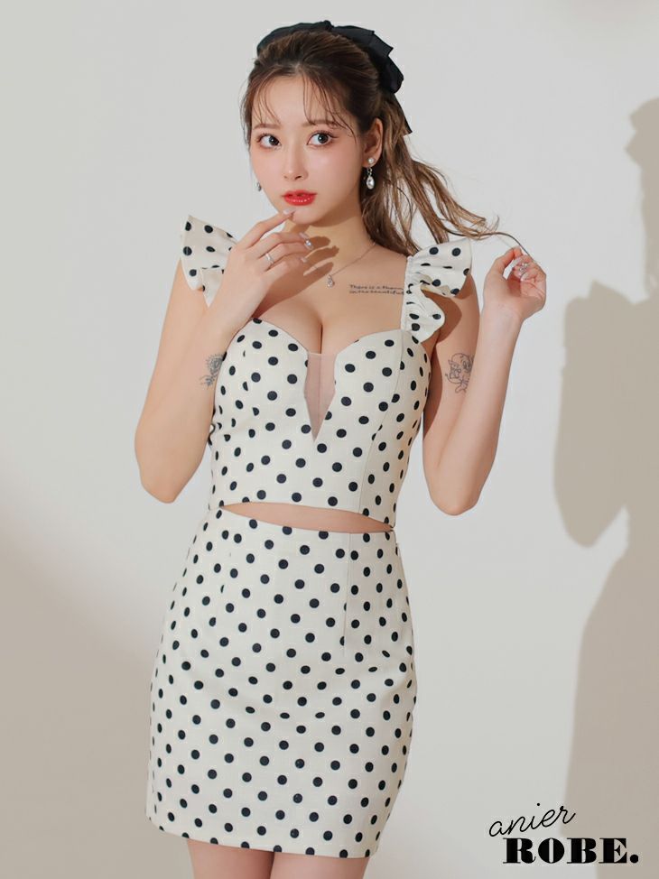 キャバドレス ミニドレス [anier.ROBE/アニエルローブ] 高級キャミソールドット柄スクエアネックフリルセットアップタイトミニドレス