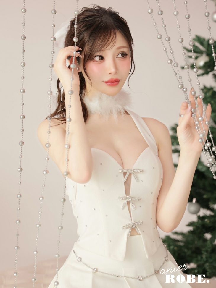 4. [ANIER./アニエル] 高級ノースリーブ セットアップ ファーチョーカー スタッズ バストカット フレアミニ サンタコスプレ