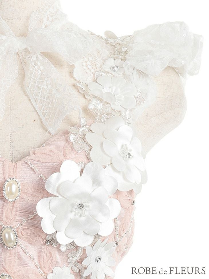 5. [ROBEdeFLEURS/ローブドフルール] 高級セットアップフラワーレース×リボンインナーパンツ台形ミニドレス